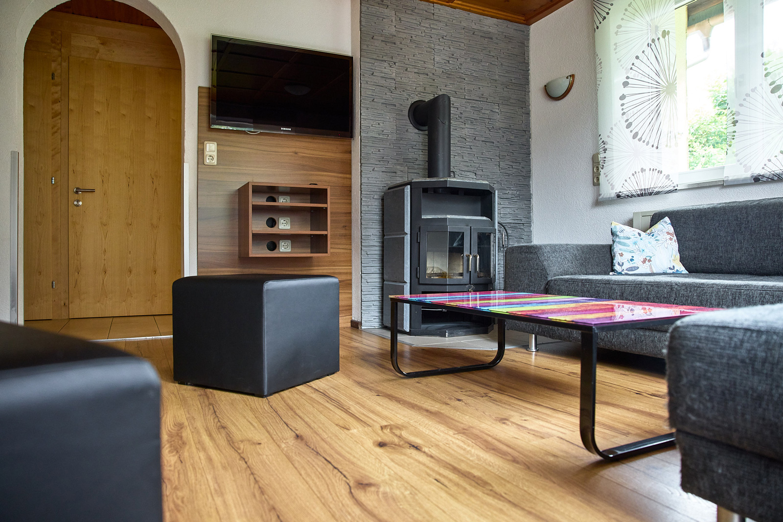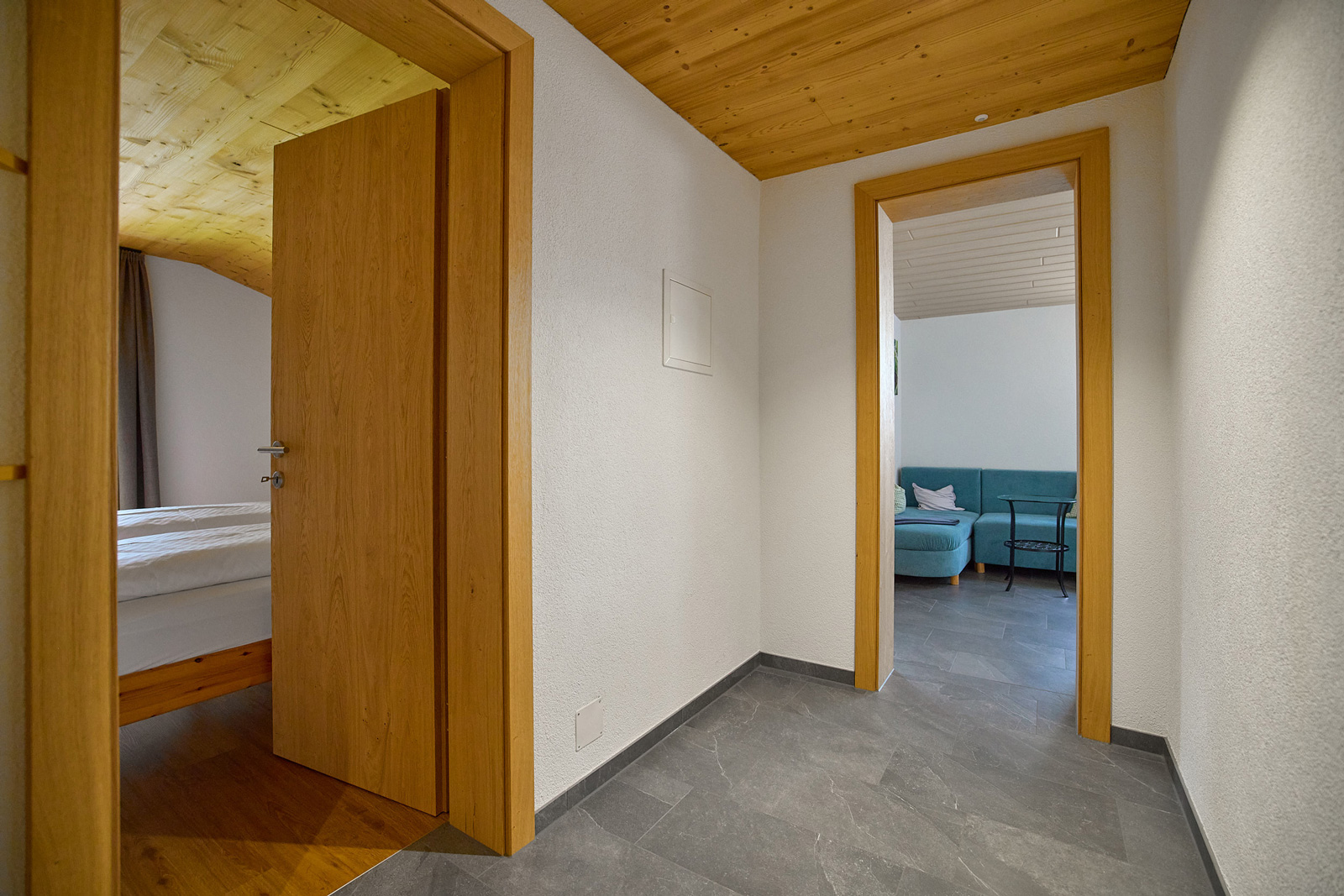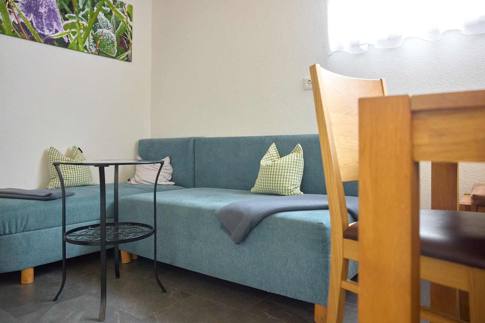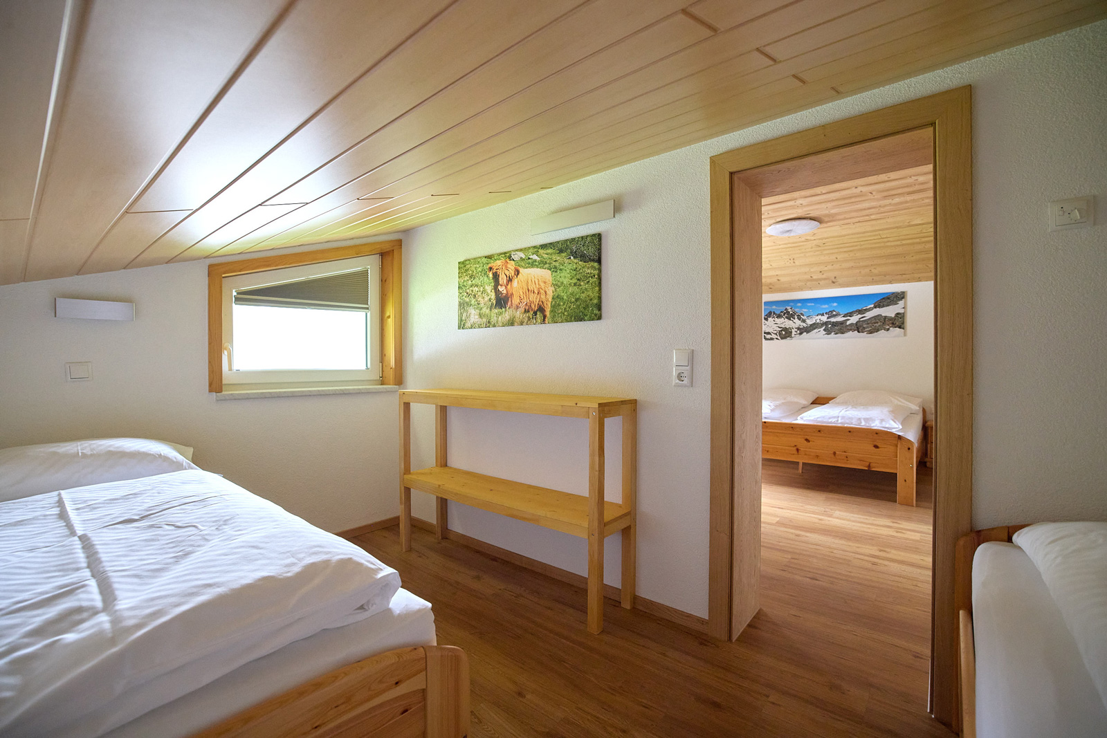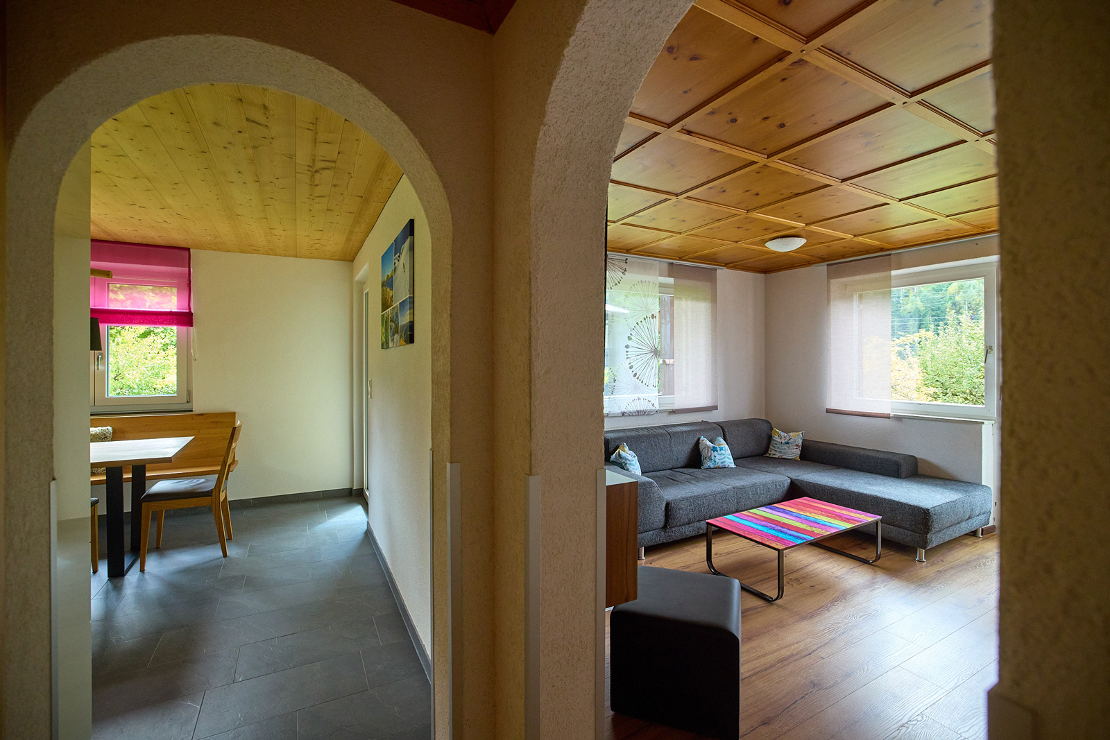 Die beiden gemütlichen Ferienwohnungen bieten Platz für jeweils bis zu sechs Personen und können auf Wunsch zusammen gebucht werden — sie sind über ein Treppenhaus verbunden.