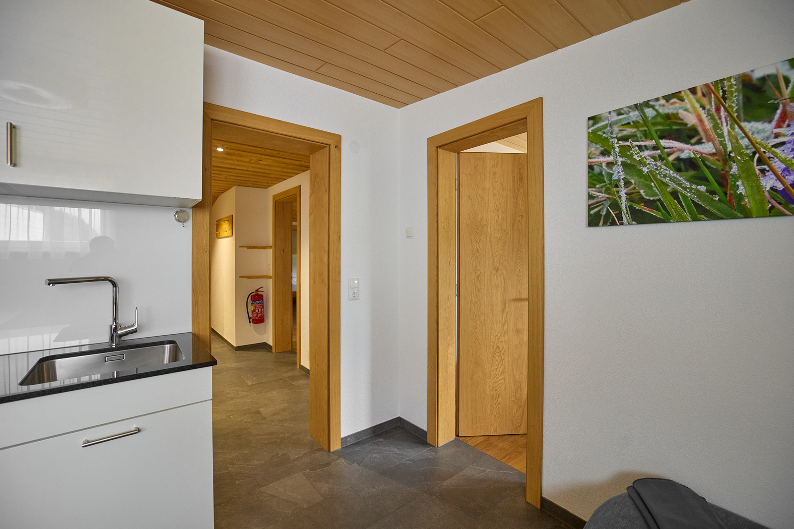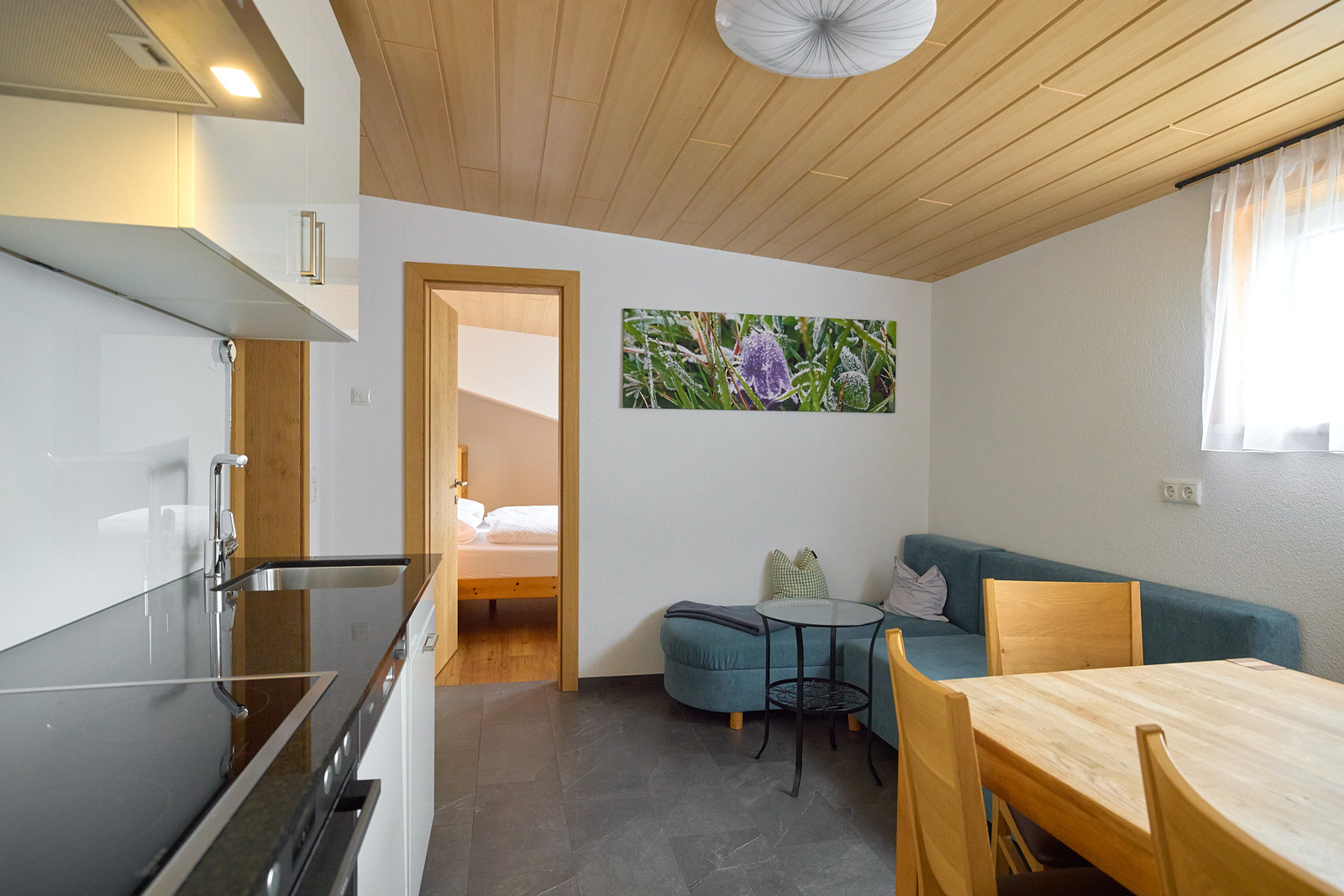 Die beiden gemütlichen Ferienwohnungen bieten Platz für jeweils bis zu sechs Personen und können auf Wunsch zusammen gebucht werden — sie sind über ein Treppenhaus verbunden.